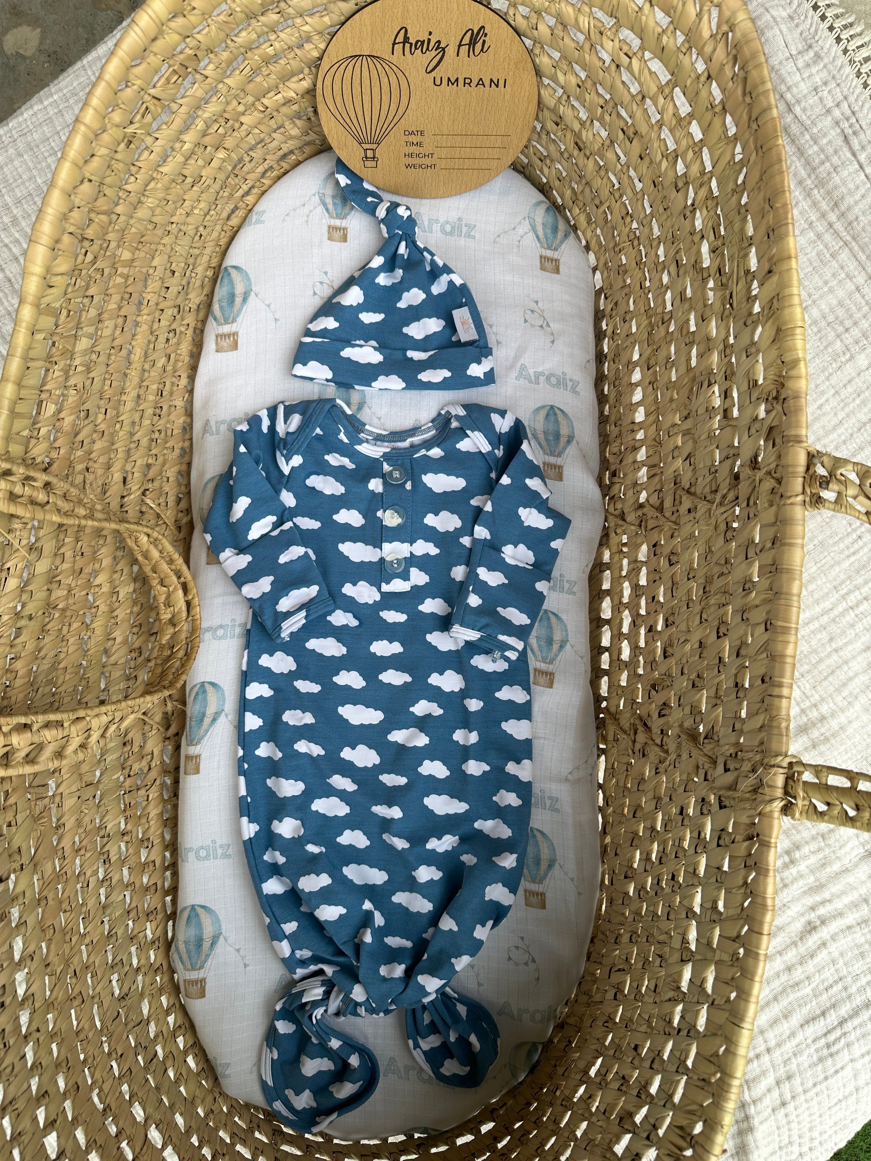 Wrap your tiny explorer in the snug embrace of our clouds knotted jersey swaddle, designed for endless adventures.