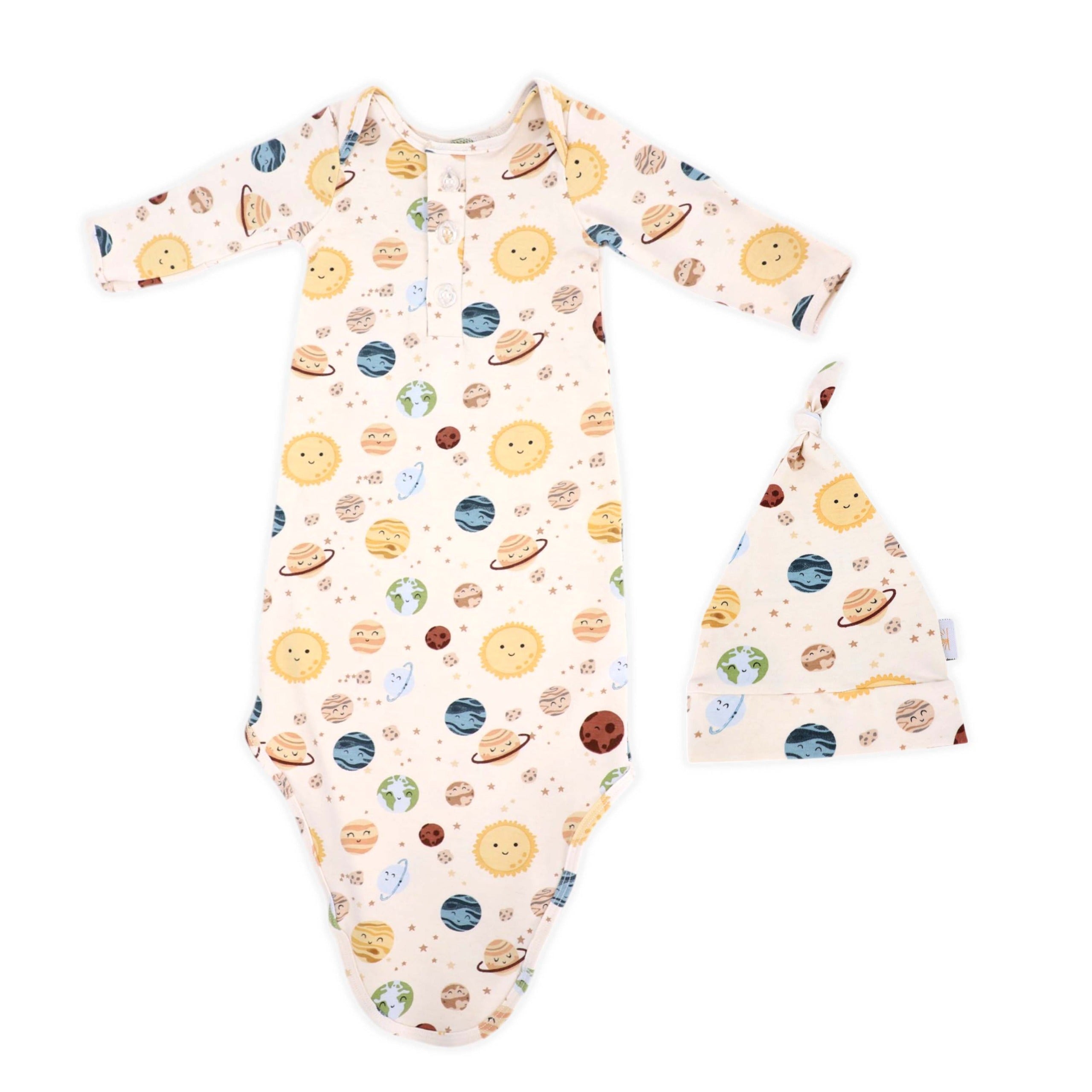 Indulge your little darling in our ribbed cotton knotted gowns, tailored to perfection for utmost comfort. Each gown boasts ribbed cotton fabric, intricate button detailing, and convenient scratch hand covers.