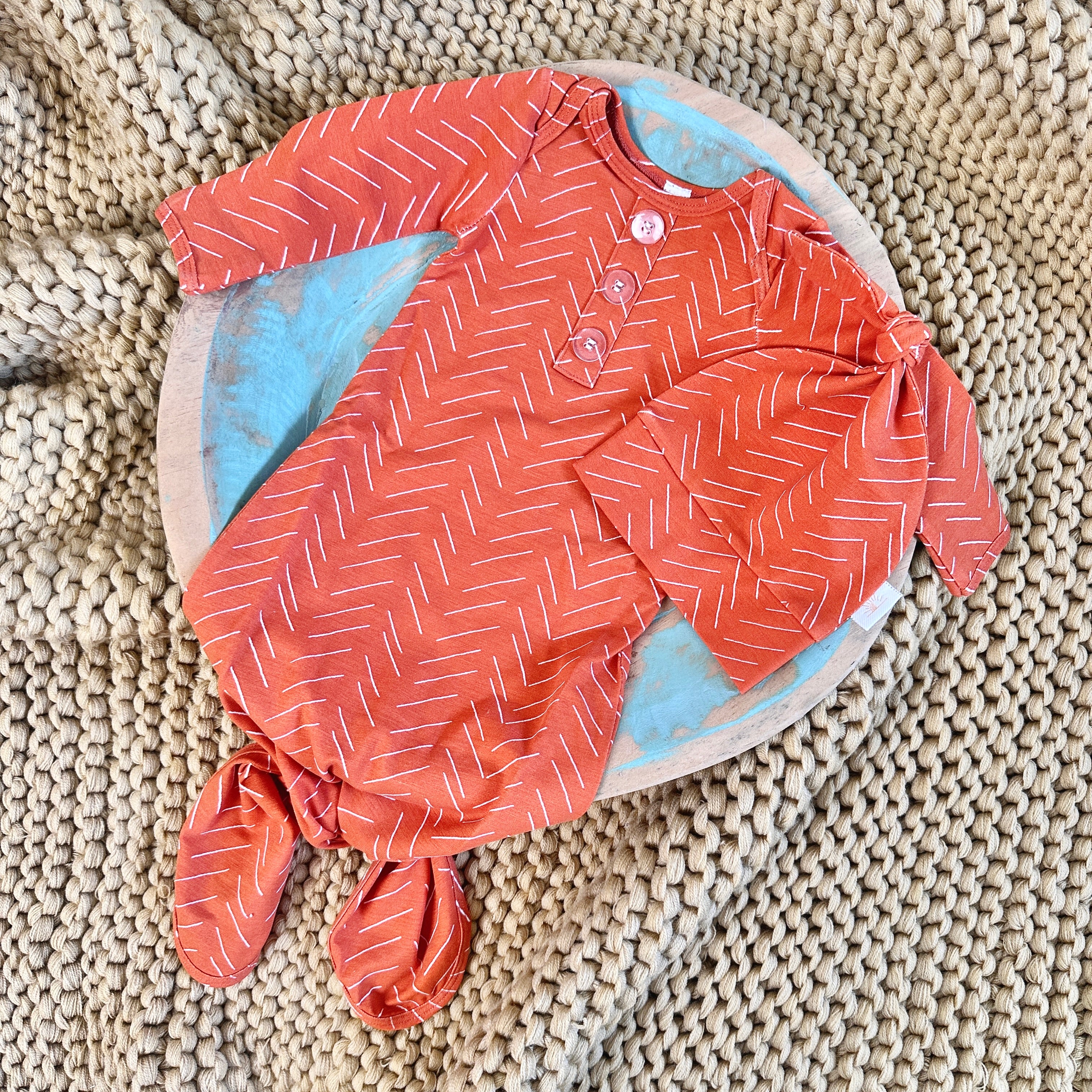 Wrap your tiny explorer in the snug embrace of our orange leaves knotted jersey swaddle, designed for endless adventures.